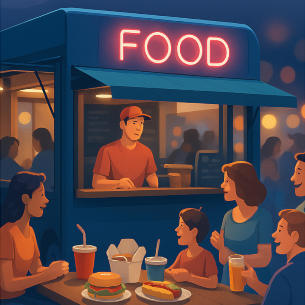 Dieser Tarif gilt für Stände, die vor Ort frisch zubereitete Speisen oder Getränke verkaufen, z.B. Hot Dogs, asiatische Küche, Crêpes, Würste, Pommes, etc.